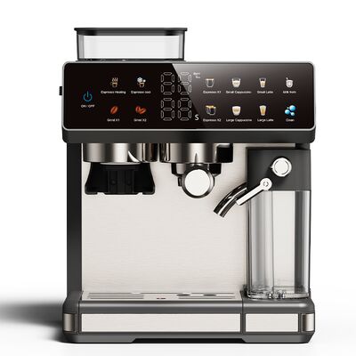 Master the art of espresso with this 20 Bar semi-automatic espresso machine featuring cold brew and hot espresso capabilities for year-round coffee enjoyment. The 1350W power delivers fast heating, while the adjustable grinder settings let you customize grind size for perfect extraction. The 2.6L water tank allows multiple cups without frequent refilling. With touch screen display and programmable temperature control, you can dial in the perfect brew for any bean. Automatic milk frothing with milk tank creates creamy foam for cappuccinos and lattes.